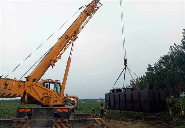 11.檢查基礎是否牢固,確定吊裝距離,根據生活污水處理設備的重量和吊裝距離選擇合適噸位的起重機。